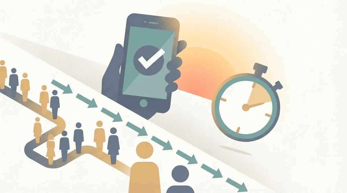 Group waivers and pre-arrival signing keep throughput steady.